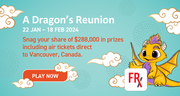 Play "A Dragon's Reunion" game daily to win your share of $288,000 in sure-win prizes including FRx Gift Cards, FRx Points, retailer vouchers and more.